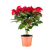The Red Poinsettia features vibrant scarlet bracts contrasted with deep green foliage, creating a bold and traditional Christmas display. Its rich colour makes it ideal for adding festive warmth to indoor décor.