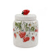 The Sifcon 12x16cm Strawberry Print Jar is a delightful storage piece adorned with a charming strawberry and floral motif, complemented by a ceramic lid topped with a sculpted strawberry handle. Perfect for storing tea, coffee, sugar, or treats.