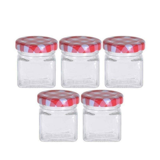 Carpenders Park Garden CentreFeaturing classic 50ml red gingham lids and clear glass bodies, this 5-piece set is perfect for storing jams, spices, or small kitchen essentials.