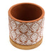 Featuring an elegant white embossed pattern on a terracotta finish. Complete with a natural bamboo base, this planter combines style and functionality