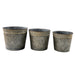 This set of three sturdy metal planters features a charming ribbed design with a weathered finish. Perfect for seasonal displays or statement plants.