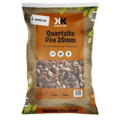 Carpenders Park Garden CentreKelkay Quartzite Pea Pebbles, perfect for decorative landscaping, pathways, borders, and water features. These natural, 20mm quartzite pebbles offe...