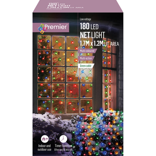 Carpenders Park Garden CentreThis is the Premier 1.7x1.2m 180L Multi-Action Net Light with White LEDs. It features a green cable and is suitable for indoor and outdoor use. The...