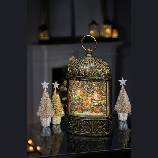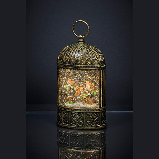 Carpenders Park Garden CentreThis is a 24cm Battery Operated Lit Robin Water Scene, featuring a beautiful robin display inside a vintage-style birdcage. The water spinner effec...