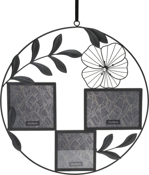 Koopman International b.vPhoto Frame For 3 Pictures On Hanging String- MetalDiameter: 46cm- Decorated With Flowers And Leaves- 1x Frame: 15x15cm- 1x Frame: 13x13cm- 1x Fram...