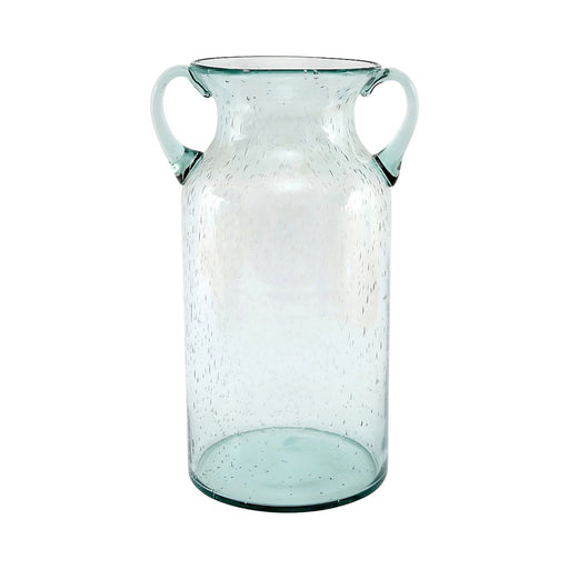 Carpenders Park Garden CentreElegant and airy with a vintage twist, this tall 28x14cm vase features twin handles and beautiful bubble detailing throughout the glass.