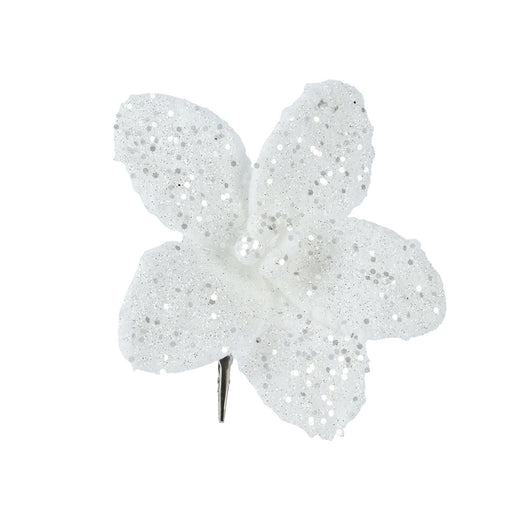 Kaemingk Poinsettia Clip – Faux Fur, White (Dia.18 X H.6Cm)