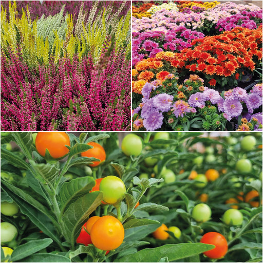 Carpenders Park Garden CentreThis set includes 3 plants 10.5cm: 1x Heather 1x Garden Mum 1x Solanum Please note: Plant colour variety may vary with every order.