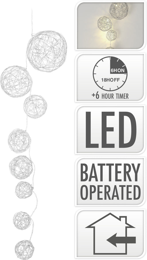 Carpenders Park Garden CentreKoopman 90cm Garland W/8Warm White LED Silver Wire