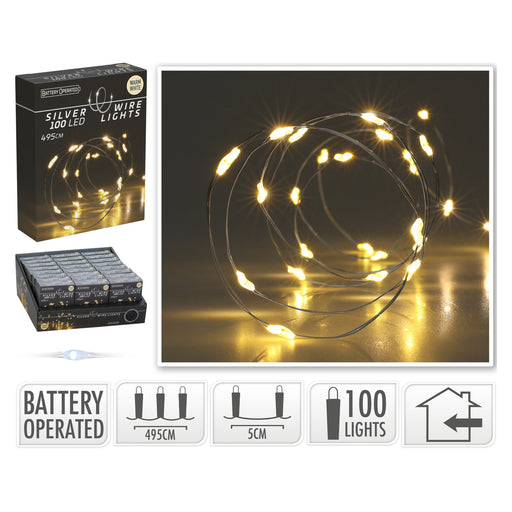 Carpenders Park Garden CentreBrighten up your festive décor with these elegant 100 LED white lights on silver wire. Spanning 495cm, they’re perfect for wreaths, centrepieces, o...