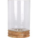 This elegant candle holder features a clear glass cylinder atop a sturdy wooden base. Ideal for adding a warm, ambient glow to any room, it is perfect for holding pillar candles. The natural wood and transparent glass design make it a versatile piece for various home decor styles.