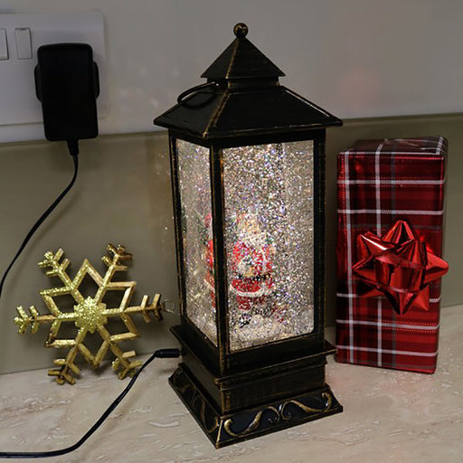 Carpenders Park Garden CentreCelebrate the magic of Christmas with this beautiful snow swirling lantern! Auto timer: 6 hours on/ 18 hours off For indoor use only 3XAA batteries...