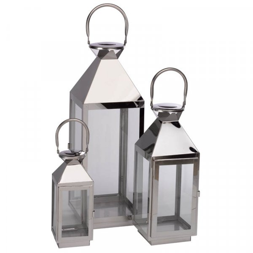 Carpenders Park Garden CentreSet of three contemporary Stainless Steel lanterns Use with regular or battery candles Candles not included For both indoor and outdoor use