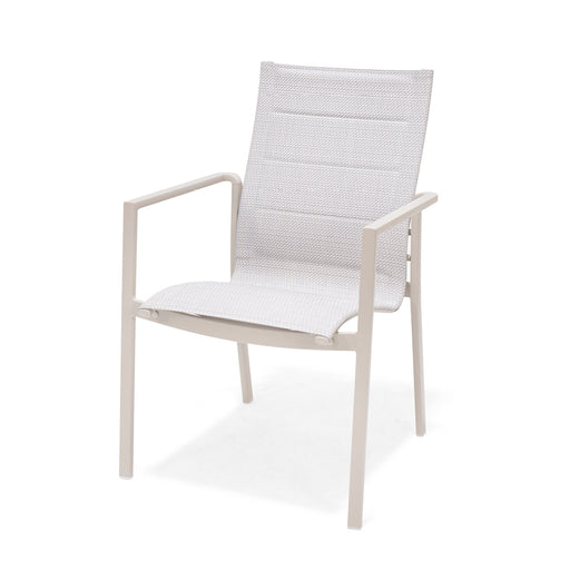 Multi position chair and stacking chair in rust-free cream-coloured aluminium frame with highly durable and maintenance-free Weather-net® support. ...
