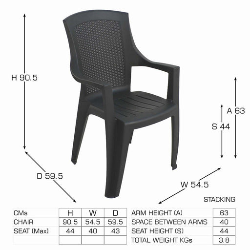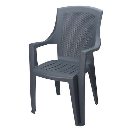 Carpenders Park Garden CentreThis sturdy outdoor chair features a comfortable armrest design with a stylish woven-effect back. Made from durable, weather-resistant plastic, it’...