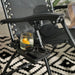 This Zero Gravity Relaxer Chair, features drink and phone holders, offers stylish comfort with a modern design. Made with all-weather-resistant woven textilene, this chair is durable and perfect for outdoor use. It has a foldable design that ensures easy storage and space-saving convenience.