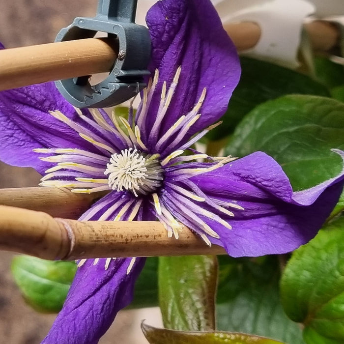 Clematis 'Petit Faucon' is a compact variety with striking blue-purple flowers that bloom from summer to early autumn. This clematis is ideal for containers and small spaces, bringing a splash of colour to patios and balconies. 'Petit Faucon' is known for its continuous flowering and vibrant colour, making it an excellent choice for adding long-lasting beauty to smaller garden areas.