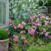Bears flowers of the most perfect formation – shallow cups of the purest mid pink. They flower very freely from early summer until well into the autumn and have a strong, pure Old Rose fragrance. It has an excellent bushy habit with upright, vigorous growth. Maturing into an attractively rounded shrub; it flowers almost to the ground. Named after the Royal Horticultural Society’s garden in Yorkshire, to celebrate the 200th anniversary of the society’s formation. David Austin, 2004.