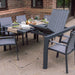 Effortless style meets everyday practicality with this modern outdoor dining set. Designed for comfort and versatility, it features a sleek extending table and eight stackable chairs, making it ideal for both family meals and entertaining guests.
