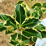 Ilex aquifolium ‘Argentea Marginata’ is a striking evergreen holly with glossy green leaves edged in creamy white. Providing year-round interest, it’s perfect for hedging, borders, or as a standalone feature plant. ardy and easy to maintain, it also produces bright red berries in winter when pollinated.
