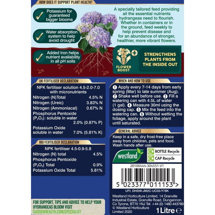Westland Hydrangea High Performance Liquid Plant Food 1Ltr